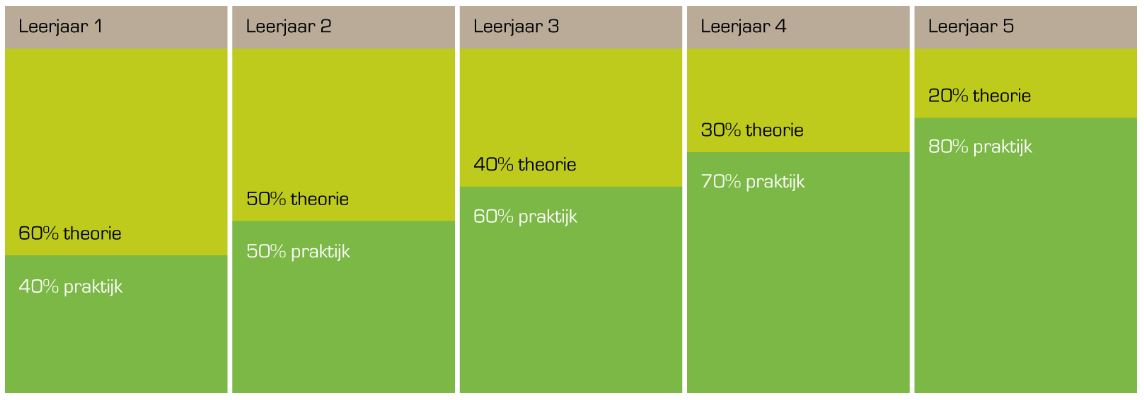 In de theorielessen werken we met een doorlopende leerlijn. Het onderwijs van alle leerjaren sluit op elkaar aan. De mogelijkheden van de leerling zijn daarbij weer ons uitgangspunt. We werken in de klas met planners. Vanaf leerjaar 1 leren de leerlingen zelf plannen en verantwoordelijkheid nemen voor hun schoolwerk. In de hogere klassen breiden we dit uit om de leerlingen zo goed mogelijk voor te bereiden op een baan of een vervolgopleiding.